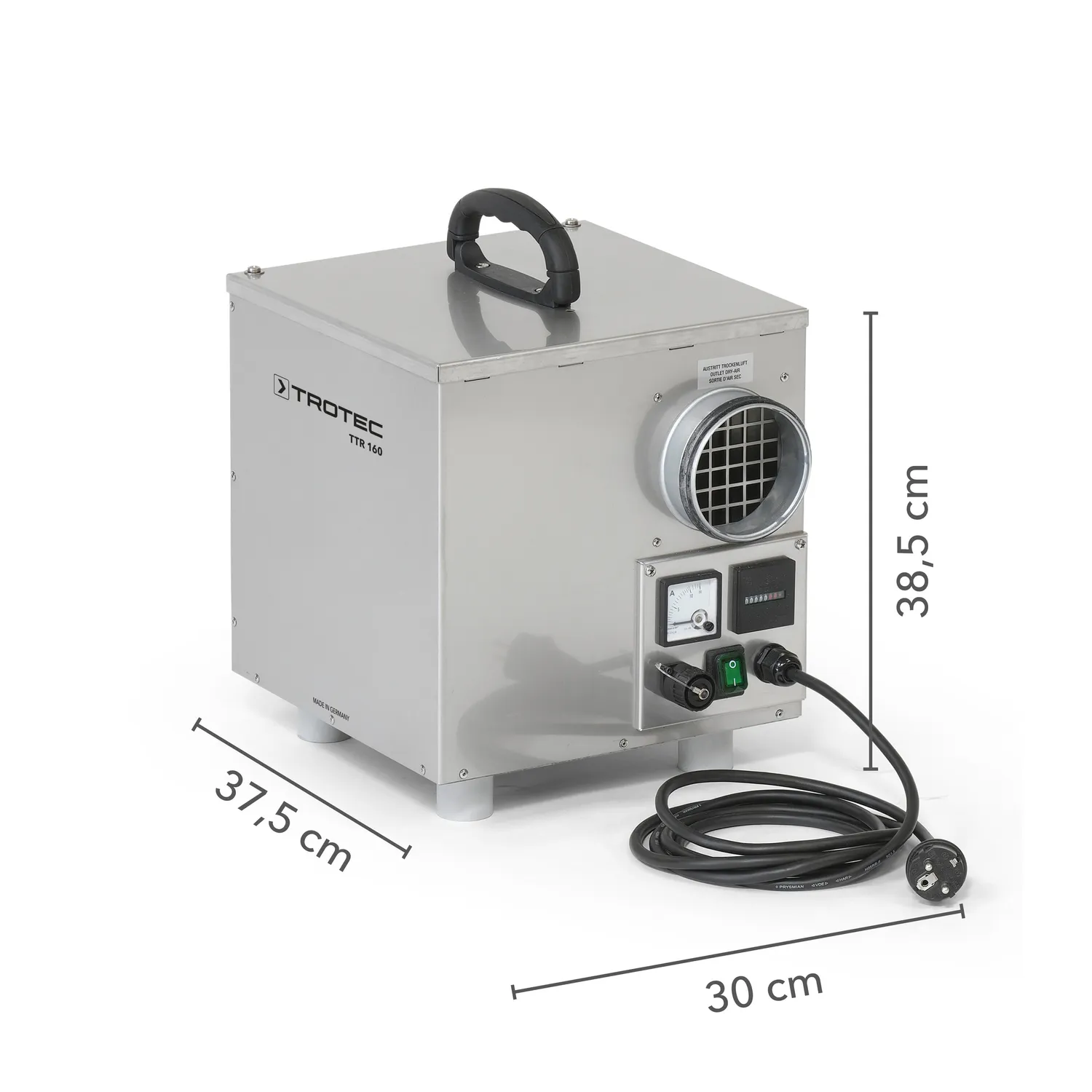 Τα τεχνικά χαρακτηριστικά του αφυγραντήρα προσρόφησης Trotec TTR 160 με ζεόλιθο είναι τα εξής: