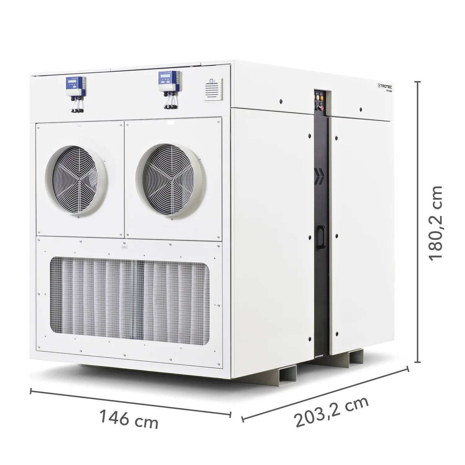 Με ονομαστική ικανότητα αφύγρανσης περίπου 1,790 κιλά την ημέρα και ονομαστικό όγκο αέρα 13,300 κυβικά μέτρα ξηρού αέρα ανά ώρα σε στατική πίεση 400 Pa, ο TTR 13500 είναι βέλτιστα εξοπλισμένος για πολύ απαιτητικές απαιτήσεις ξηρού αέρα ακόμη και σε δροσερά περιβάλλοντα με χαμηλά σημεία δρόσου.