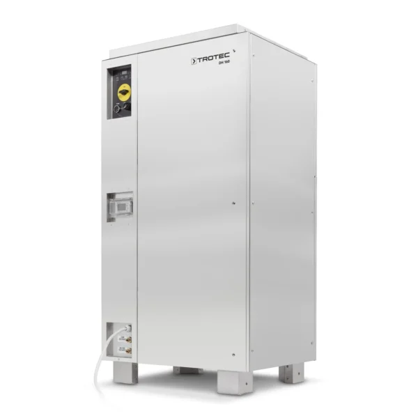 Ο βιομηχανικός αφυγραντήρας συμπύκνωσης DH 160 BX ES, διαθέσιμος και με περίβλημα από ανοξείδωτο χάλυβα, ξεχωρίζει για την υψηλή του ικανότητα αφύγρανσης, την αξιόπιστη λειτουργία σε συνεχές καθεστώς και τις ευέλικτες επιλογές εξοπλισμού. Σχεδιασμένος για αυτόνομη χρήση, μπορεί επίσης να εγκατασταθεί επιτοίχια ή σε οροφή και να ενσωματωθεί εύκολα σε υπάρχοντα συστήματα αεραγωγών, εφόσον έχει προηγηθεί η κατάλληλη προετοιμασία.